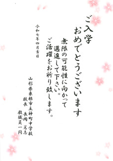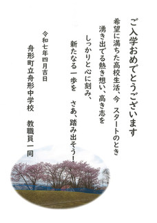 4月8日(火)の令和7年度 入学式にあたり、多くの祝詞を頂戴しました。